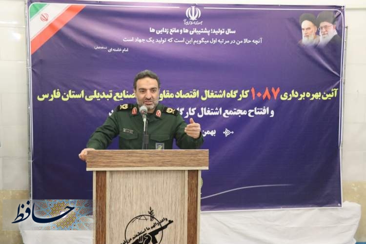 سرهنگ اسماعیل قزل سفلی مسئول بسیج سازندگی استان فارس نیز در این همایش در خصوص آعاز به کار ۱۰۸۷ کارگاه اشتغال اقتصاد مقاومتی و صنایع تبدیلی گفت: این طرح همزمان در ۴۳ نقطه استان فارس اجرا شد و به صورت نمادین ۶ شهرستان نیز از طریق ارتباط تصویری کارگاه های تولیدی آنها مورد بهره برداری قرار گرفت.