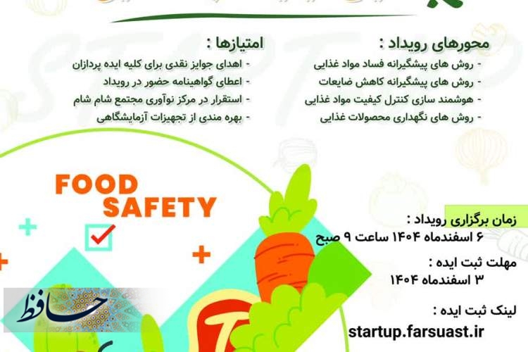 به گزارش حافظ خبر، رویداد استارتآپی با عنوان «راهکارهای نوآورانه در تضمین کیفیت مواد غذایی» با هدف یافتن راهحلهای نوین برای ارتقای کیفیت محصولات غذایی، در استان فارس برگزار خواهد شد.