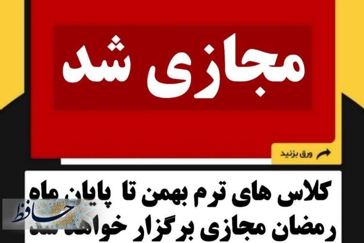 به گزارش حافظ خبر، به اطلاع اساتید و دانشجویان گرامی و کارکنان میرساند با توجه به تقارن آغاز نیمسال تحصیلی دوم ۱۴۰۵-۱۴۰۴ با ایام پر خیر و برکت ماه مبارک رمضان و در راستای بهرهمندی هرچه بیشتر دانشگاهیان از فضائل و برکات این ماه شریف، بدینوسیله اعلام میگردد تمامی کلاسهای آموزشی دانشجویان رشته های غیرپزشکی، پزشکی و پیراپزشکی دانشگاه آزاد اسلامی استان فارس در کلیه مقاطع از شنبه ۹ اسفندماه تا پایان سال جاری بهصورت غیرحضوری برگزار خواهد شد.